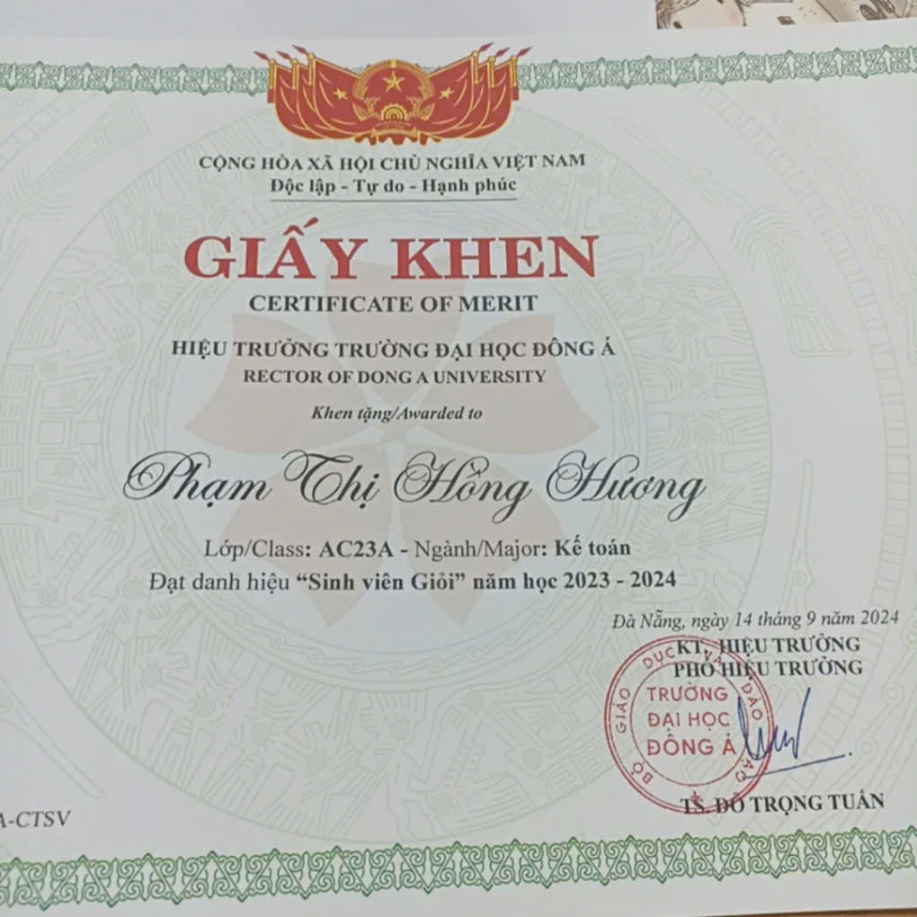 Tôi là Phạm Thị Hồng Hương, sinh viên năm 3 chuyên ngành Kế toán tại Trường Đại học Đông Á Đà Nẵng. Tôi có định hướng rõ ràng trong lĩnh vực kế toán và luôn đề cao sự chính xác, cẩn thận trong từng công việc. Trong quá trình học tập, tôi đã tích lũy được nền tảng kiến thức về kế toán tài chính, xử lý chứng từ và lập báo cáo, đồng thời thành thạo Excel và các phần mềm kế toán cơ bản. Bên cạnh đó, tôi không ngừng rèn luyện kỹ năng phân tích, tư duy logic và khả năng làm việc nhóm để nâng cao hiệu quả công việc. Với tinh thần cầu tiến và trách nhiệm, tôi luôn sẵn sàng học hỏi và thích nghi để hoàn thành tốt các nhiệm vụ được giao.